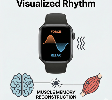 RhythmRehab 并不是简单的计数器。我们利用 linkVector 的动作捕捉技术,将枯燥的握力康复训练转化为可视化的数据流。无需昂贵的专业设备,只需您的 iPhone 和 Apple Watch,即可开启科学复健之旅。